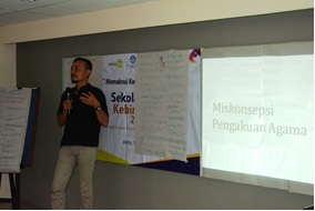 Febionesta dalam pemaparannya mengungkapkan miskonsepsi pengakuan agama di Indonesia. Salah satunya adalah pernyataan mengenai agama resmi dan tidak resmi. Menurut pria yang akrab disapa Mayong ini miskonsepsi tersebut dampaknya sangat panjang.
